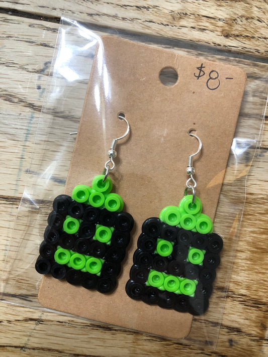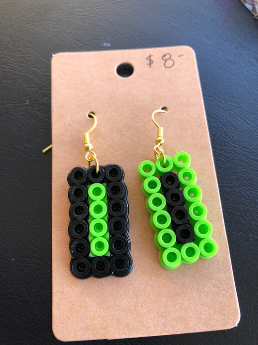 Black/Lime Green Rectangle Earrings Halloween Ornaments